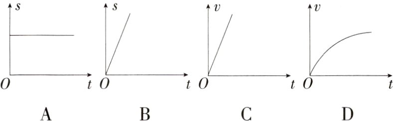 B A图,路程不随时间的变化而变化,物体处于静止状态,故不符合题意;B图,通过的路程与时间成正比,即物体的速度不变,做匀速直线运动,故符合题意;C、D图,速度随时间的变化而变化,物体做变速运动,故不符合题意。