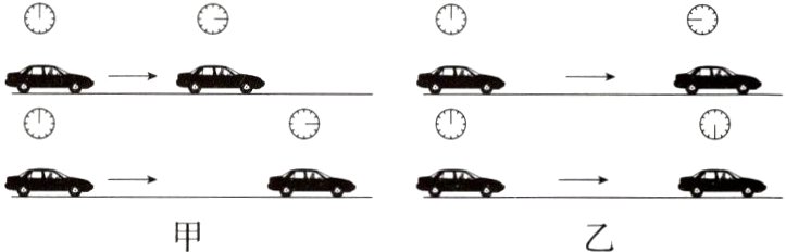 B 图甲,两汽车行驶的时间相同,运动的路程不同,运动的快慢不同;图乙,两汽车行驶的路程相同,运动的时间不同,运动的快慢不同。