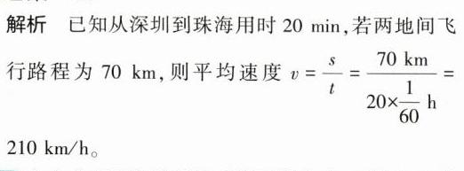 3.新特色.现代科技(2024安徽芜湖模拟)2024年2月27日,我国自主研制的“飞行汽车”成功完成全球首条跨海跨城航线的首飞,从深圳到珠海用时20min,若两地间飞行路程为70km,则这段路程“飞行汽车”的平均速度为____km/h。(P8202002)