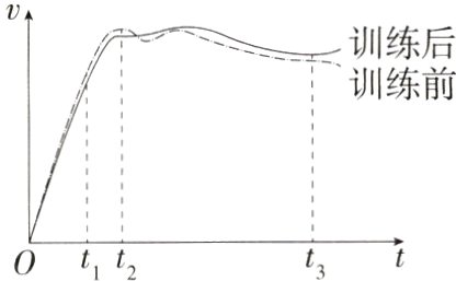 (5)科学训练可以提升运动成绩,小明科学训练前后百米全程测试中,v−t图像如图所示,由图像可知0~t时间内,________(选填“训练前”或“训练后”)的平均速度大;t₁时刻后,小明训练前做________运动,训练后做________运动(后两空均选填“加速”“减速”或“匀速”)。