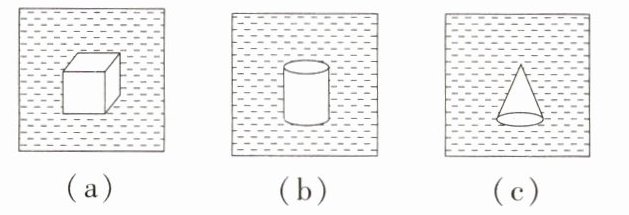 C 根据液体压强公式可知,物体下表面受到液体的压强:P向上 = ρ液gh下,物体上表面受到液体的压强:P向下 = ρ液gh上,根据p = $\frac{F}{S}$可知,物体下表面受到液体向上的压力:F向上 = P向上S下 = ρ液gh下S下,物体上表面受到液体向下的压力:F向下 = P向下S上 = ρ液gh上S上,根据浮力产生的原因可知,物体受到的浮力等于液体对物体上、下表面的压力差,即F浮 = F向上 - F向下 = ρ液gh下S下 - ρ液gh上S上 = ρ液g(h下S下 - h上S上),根据阿基米德原理可知,物体受到的浮力为F浮 = G排 = ρ液gV排,所以要推导阿基米德原理,最好用上、下表面的横截面积相同的柱状模型,由此可知,图(c)不适合作为模型来推导阿基米德原理。