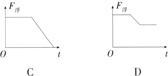 D 当胶囊未露出江面时,排开水的体积不变,根据阿基米德原理知,该过程胶囊所受浮力大小不变;在胶囊露出江面的过程中,排开水的体积不断变小,由$F_{浮}=\rho_{液}gV_{排}$可知,该过程中胶囊所受浮力不断变小;当胶囊漂浮在江面时,排开水的体积不变,根据阿基米德原理知,该过程胶囊所受浮力大小不变。故D正确。