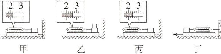 (4)为解决(3)中的问题,将实验装置改进如图丁。实验时,拉着木板沿水平地面向左运动,即使木板不做匀速直线运动,也不影响木块的滑动摩擦力的测量,原因是________________________。