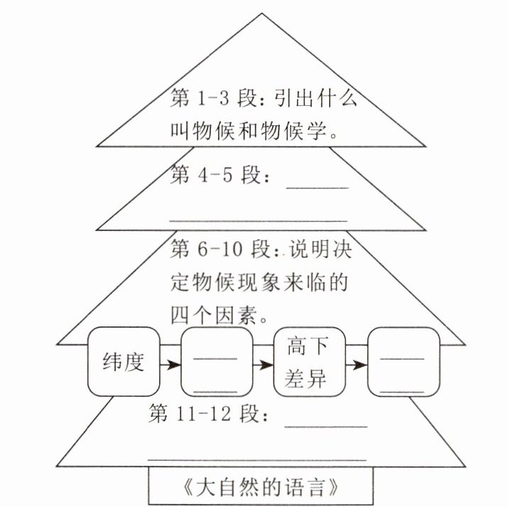 (1) 完成上面的结构图,通过补充思维导图,我明白了所谓“物候”,就是 。