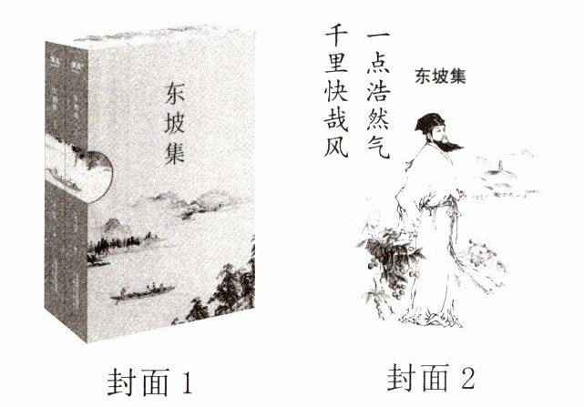 4.几位同学决定从《东坡集》中汲取精神营养。小慧找到了两个版本的《东坡集》,它们的封面不一样。你更喜欢哪种封面呢?请写出你的选择,并说明选择它的理由。写作提示:①说明所选封面的构图要素和设计特点;②90字左右。