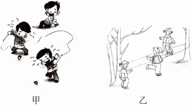 5. [立德树人·五育并举]如图所示,“抽陀螺”和“跳橡皮筋”是我国民间传统游戏,其中图甲说明力可以改变物体的________,图乙说明力可以改变物体的________。