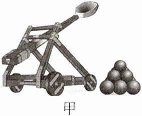 5. [2024·大同期中]投石机是冷兵器时代的一种重要攻城武器,它能在远距离处将弹丸抛出,实现杀伤敌军的目的,因此投射弹丸的远近成为战争胜负的关键因素。实践小组的同学为了探究弹丸投射距离的远近与哪些因素有关,设计了图甲所示的投石臂可以伸缩的投石机(图乙是其简化示意图,该投石臂的AB段长度固定,BC段长度可伸缩),并用沙包模拟弹丸在校园操场上进行实验。