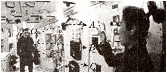 9. 如图所示,航天员叶光富和王亚平老师在天宫课堂演示太空抛物,生动演示了天地抛物之间的区别。当叶光富老师将手中的冰墩墩抛向王亚平老师时,OA、OB、OC分别表示三条运动轨迹,其中能近似描述被抛出的冰墩墩运动轨迹的是______(填“OA”“OB”或“OC”)。