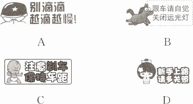 7. 车贴已经成为一种时尚,它诙谐、搞笑又不乏警示作用。下列车贴中的提示语属于防止因惯性带来危害的是( )