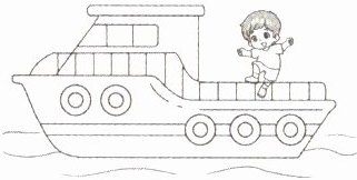 9. 小点随父母去乘船游玩,来到匀速直线行进的游船上,他高兴地竖直向上跳了起来(如图)。由于船在行进中,他会( )