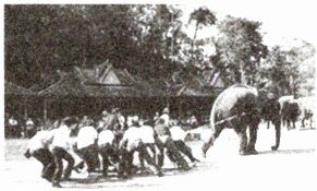6. 如图所示的是处于僵持不动中“人象大战”的情景。与众人对绳子的拉力是一对平衡力的是 ( )