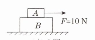 【变式】如图所示,$G_{A}=15\ N$,$G_{B}=20\ N$,在水平向右的拉力$F = 10\ N$的作用下一起水平向右做匀速直线运动,则物体$B$受到水平地面的摩擦力为________ N。