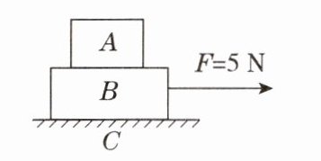 5. 将物体$A、B$叠放在水平面$C$上,然后两物体在如图所示外力的作用下,一起以相同速度做匀速直线运动,则$B、C$间摩擦力为______ N,$A、B$间______(填“有”或“没有”)摩擦力。
