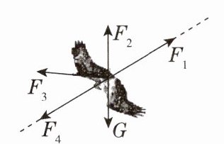 4. 如图所示,一只鱼鹰发现河面上的鱼,沿虚线斜向下匀速俯冲,此过程中,空气对鱼鹰作用力的方向可能是 ( )
