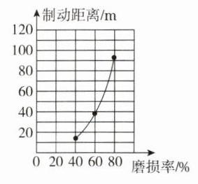 (2) 根据《中华人民共和国道路交通安全法实施条例》规定,机动车在高速公路上行驶,车速低于100 km/h时,与同车道前车的最小距离不得少于50 m。假设实验车辆在最高限速为100 km/h的高速公路上行驶,当轮胎磨损率达到______(填“40%”“60%”或“80%”)时必须更换新轮胎;