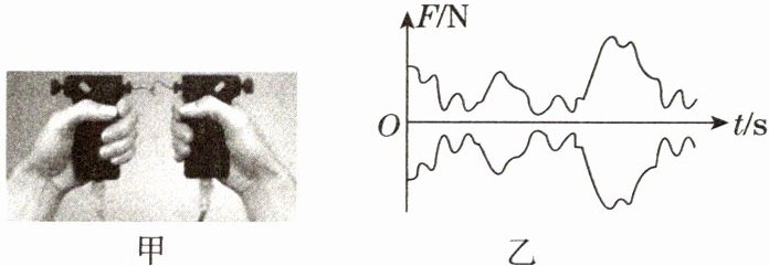 7. [新器材·数字化仪器] 用数字化手段进行实验可以使结果更加直观。如图甲所示,把两个探头的挂钩钩在一起,向相反方向拉动,观察到显示器屏幕上出现的结果如图乙所示。观察并分析两个相互作用力随时间变化的曲线,得到下列实验结论,其中正确的是 ( )