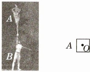 3. [2024·山西中考] 杂技在我国历史悠久,是力量与柔韧完美结合的传统艺术。如左图所示,是杂技演员正在表演的情景。请你在右图中画出演员A被托举且静止时受力的示意图。