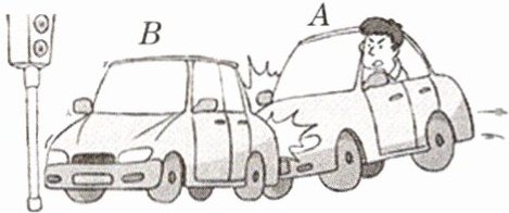 4. [立德树人·五育并举] 保持安全车距对于防止追尾事故至关重要。如图所示,一辆小汽车 A 未保持安全车距,未能及时刹住,追尾了另一辆小汽车 B,未造成人员受伤,仅造成两车不同程度损坏。对事故分析正确的是( )