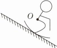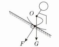 3. 如图所示是一名滑雪运动员沿斜面加速下滑时的简化图,其中O点为运动员的重心。请你在图中画出运动员受到的重力G和滑雪板对雪面压力F的示意图。