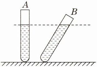 5. 如图所示,A、B两个内径相同的试管内装有质量相同的不同液体,液面相平,试管底部受到的液体压强分别为$p_A$、$p_B$,则 ( )
