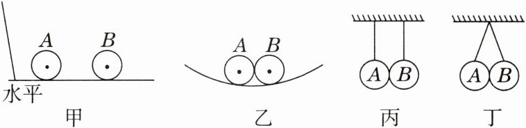 4. 如图所示的情景中,A、B两球之间一定有弹力作用的是图________。