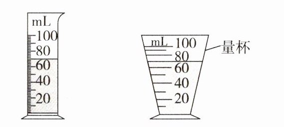 【变式】将质量相等的水分别倒入底面积相同的量筒和量杯内,水对量筒和量杯底部的压强分别为$p_{1}$、$p_{2}$,压力分别为$F_{1}$、$F_{2}$,则它们的大小关系是$p_{1}$______$p_{2}$,$F_{1}$______$F_{2}$。(均填“>”“=”或“<”)