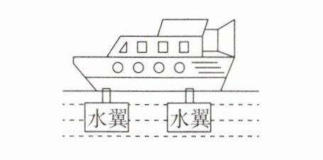 (2)船体被抬高的原因:当船在水中高速航行时,水翼上表面______,它与船体间的水流速度______,压强______;水翼下表面的水流速度______,压强______。因此在水翼的上、下表面存在向______的压强差,所以船体被抬高了。