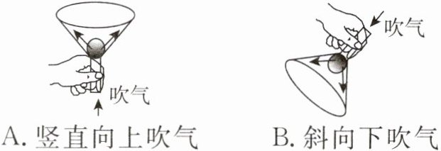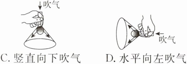 7. [2024·晋中期中] 小明采用“向漏斗口吹气,观察乒乓球运动状态”的方法来探究流速对流体压强的影响。下列方案中不合理的是 ( )