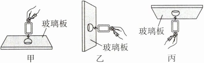 ①将沾水的塑料挂衣钩的吸盘放在光滑玻璃板上,用力挤压吸盘;