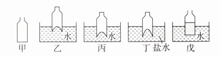 (3)小明继续进行了如图丙、丁的实验操作:将塑料瓶压入水中,并在______(填“塑料瓶”或“水槽”)上作出液面的标记,再将塑料瓶压入装有盐水的水槽内,直至液面到达标记处,观察实验现象可得出结论:在同一深度处,液体的密度越大,压强越________________;