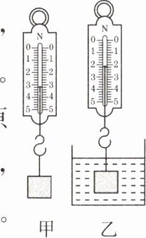 2. (教材改编题)小点在弹簧测力计下悬挂一个重物,然后又将此重物浸没在水中,测力计两次示数如图甲、乙所示。图乙中弹簧测力计示数变小的原因是重物受到水对它的____力,大小为______N,方向__________。