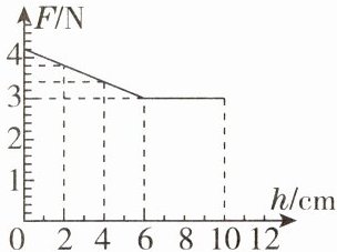 7. 如图所示的是某金属圆柱体从水面缓慢浸入水中时,根据实验数据描绘的弹簧测力计示数F随圆柱体浸入深度h变化的关系图像,根据图像信息,下列判断正确的是 ( )
