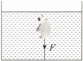9. 如图所示,体积为200 cm³的玩具在轻质绳子拉力F = 1.2 N的作用下浸没在水中,处于静止状态(ρ水 = 1.0×10³ kg/m³,g取10 N/kg),此时玩具受到的浮力为_______N,受到的重力为_______N。