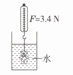 4. [2024·眉山一模] 用弹簧测力计悬挂重为 5.4 N 的小熊挂件,放入水中,静止时测力计示数如图所示,则小熊挂件在水中受到的浮力为 ____ N,小熊挂件的体积为 ________ m³,小熊挂件的密度为 ________ kg/m³。($\rho_{水}=1.0\times10^{3}\text{ kg/m}^{3}$,$g$ 取 10 N/kg)
