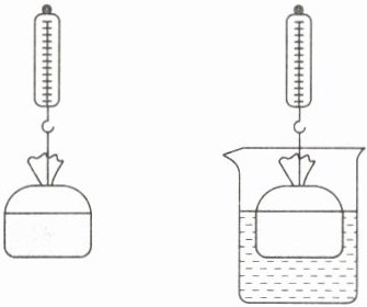 5. 如图所示,在一只不计重力和厚度的塑料袋中装入大半袋水,用弹簧测力计钩住并将其慢慢浸入水中,直至塑料袋中的水面与容器中的水面相平,在此过程中弹簧测力计的示数变化情况是 ( )