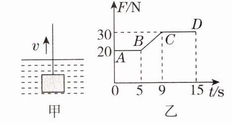解:(1)由图可知,AB段拉力不变,表明金属块受到的浮力不变,金属块完全在水下,BC段拉力变大,表明金属块受到的浮力变小,金属块逐渐露出水面,CD段拉力不变,表明金属块完全露出水面。CD段金属块完全露出水面,拉力等于金属块的重力,所以金属块的重力为30 N。