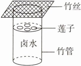 9. [立德树人·传统文化] [2024·大同三模] 人们为了知道卤水是否有煎熬的价值,会先把莲子放在四种浓度不同的卤水中浸泡,得到四个密度不同的莲子;然后在竹管内装入需要检验的卤水,将四个莲子同时放入卤水中,通过莲子浮起的数目来判断卤水的浓度(如图所示)。下列说法正确的是( )