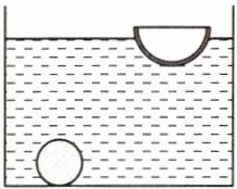 8. 把质量相等的两块橡皮泥分别捏成实心球状和碗状,轻轻放到水面,发现实心球状橡皮泥沉到容器底部,碗状橡皮泥漂浮在水面,如图所示,则它们所受浮力的大小关系是( )
