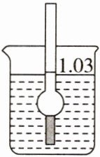 1. 小君所在的项目学习小组为了检验家中鸭蛋是否变质,需要配制1.03 g/cm³的食盐水。小君将密度计放入配制好的食盐水中,如图所示,代表1.03 g/cm³的刻度线在液面之上。下列对所配制溶液的密度判断和后续操作正确的是( )