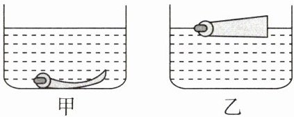3. [2024·大同一模]可回收垃圾投放前应保持清洁。小晋在清洗金属材质的空鞋油管时,发现挤瘪的空鞋油管沉在水底(如图甲所示),而将它撑鼓后却浮在水面(如图乙所示)。下列分析正确的是 ( )