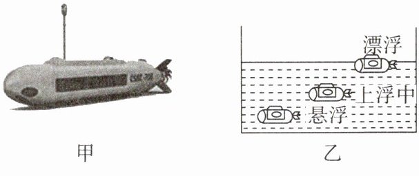 2. [2024·晋中三模]无人潜艇是未来海军发展的重要方向,对于国家海洋安全和国防建设具有重要意义。图甲是中国向世界展示的一款超大型无人潜航器,图乙是潜航器在海水中悬浮、上浮、漂浮的训练过程示意图。对于其训练过程,下列分析正确的是 ( )