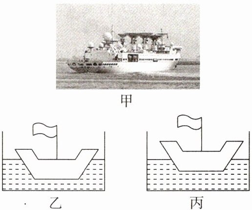 6. [2024·晋城二模]如图甲所示是“远望6号”远洋测量船,它可以在南北纬60°以内的任何海域航行,完成对各类航天飞行器的海上跟踪与测控任务。小明将自制的小船先后放在不同浓度的液体中,模拟测量船在不同海域航行的情景,如图乙、丙所示。若图乙、丙中液体的深度相同,则下列说法中正确的是 ( )