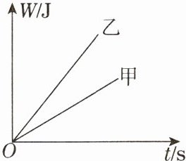 10. [2024·晋中期末]某学习小组在比较甲、乙两辆不同动力系统玩具车的性能时,使两辆小车在同一水平面上做匀速直线运动,获得如图所示的小车做功W与时间t的图像。下列说法正确的是 ( )