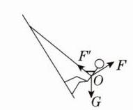 9. 一名攀岩运动员拉着绳子停在峭壁上,如图所示的是这一时刻的简化图,请你以重心 O 为作用点,在图中画出: