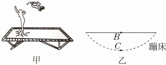 10. [2024·泰州一模]图甲是蹦床比赛的情景,图乙是运动员从最高点A下落到最低点C的简化图,B点是运动员与蹦床刚开始的接触点,不考虑空气阻力,以下说法正确的是( )