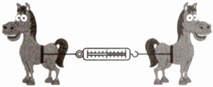 4. 如图所示,两匹马沿水平方向分别用500 N的力同时拉弹簧测力计的挂钩和拉环,使弹簧测力计保持静止状态,不计弹簧测力计的自重。则弹簧测力计的示数为 ( )