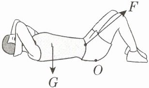 6. [2024·晋中三模]如图所示是小明同学在做仰卧起坐时的情景,人体可看成杠杆模型,O为支点,肌肉的拉力F为动力,请在图中画出动力臂和阻力臂。