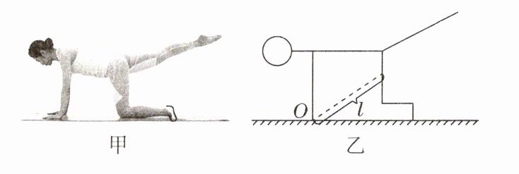 12. 如图甲所示,将人看作杠杆,支点在手上,请在简图乙中画出地面对脚的作用力F的示意图(l为F的力臂)。