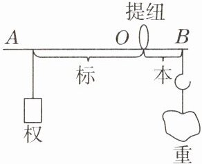 10. [立德树人·传统文化]我国古代《墨经》最早记述了秤的杠杆原理,如图所示,“权”“重”对应物理学中的力,“标”“本”对应物理学中的______;当“重”增大时,应把“权”向______(填“A”或“O”)移动,才能平衡;调节后,秤能够静止或者匀速转动,则视为秤处于__________状态。