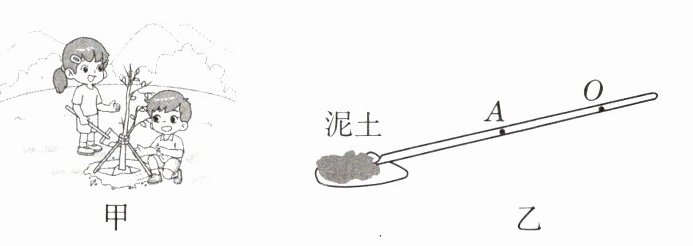7. [2023·成都中考] 植树节当天,学校初二年级开展植树活动。同学们分工合作,如图甲。小高正在用铁锹铲土。将铁锹视为杠杆,O为支点,请在图乙中画出:①手在A处施加的最小动力F的示意图;②F的力臂l。